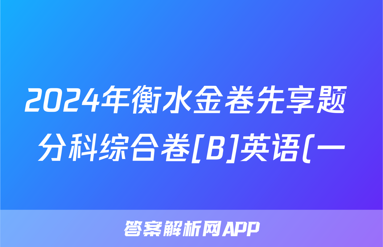 2024年衡水金卷先享题 分科综合卷[B]英语(一)1答案,目前2024届百校联盟答案网已经汇总了2024年衡水金卷先享题 分科综合卷[B]英语(一)1答案的各科答案和试卷,获取更多{{papers_name}}答案解析,请在关注本站。