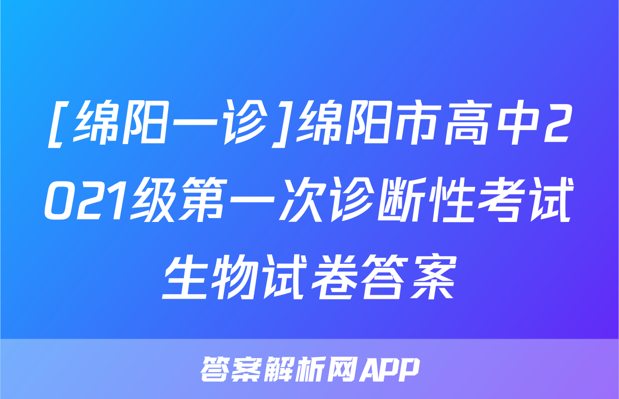 [绵阳一诊]绵阳市高中2021级第一次诊断性考试生物试卷答案,目前2024届百校联盟答案网已经汇总了[绵阳一诊]绵阳市高中2021级第一次诊断性考试生物试卷答案的各科答案和试卷,获取更多{{papers_name}}答案解析,请在关注本站。
