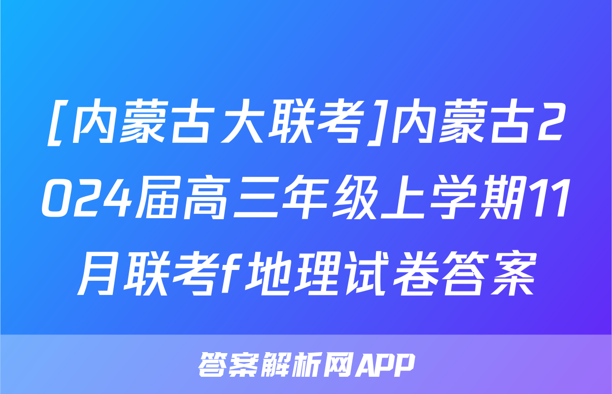 [内蒙古大联考]内蒙古2024届高三年级上学期11月联考f地理试卷答案