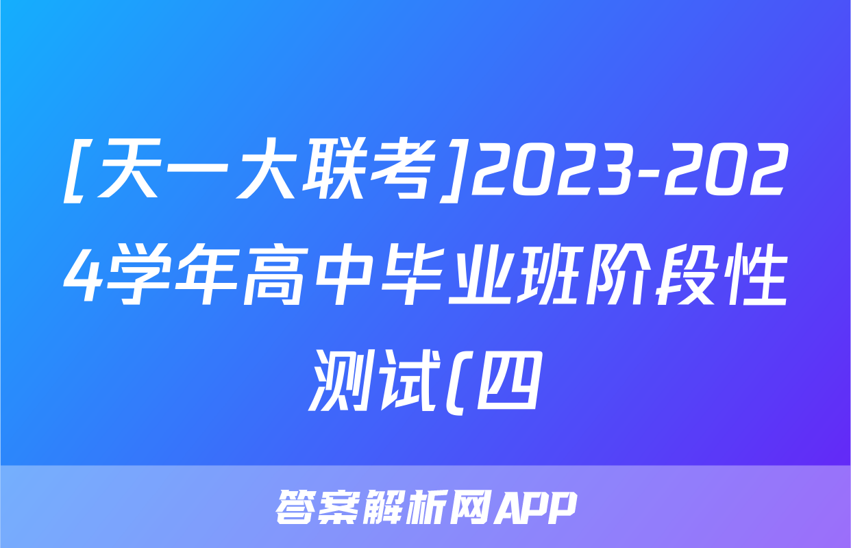 [天一大联考]2023-2024学年高中毕业班阶段性测试(四)4政治(老教材版)试题,目前2024届百校联盟答案网已经汇总了[天一大联考]2023-2024学年高中毕业班阶段性测试(四)4政治(老教材版)试题的各科答案和试卷,获取更多{{papers_name}}答案解析,请在关注本站。