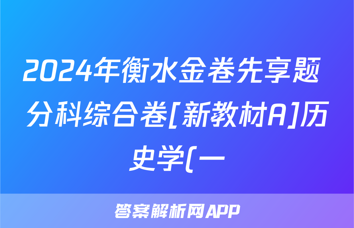 2024年衡水金卷先享题 分科综合卷[新教材A]历史学(一)1答案,目前2024届百校联盟答案网已经汇总了2024年衡水金卷先享题 分科综合卷[新教材A]历史学(一)1答案的各科答案和试卷,获取更多{{papers_name}}答案解析,请在关注本站。