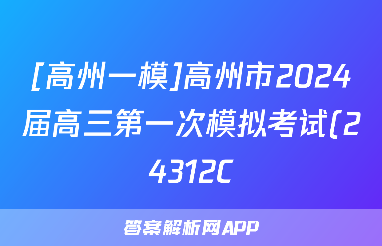 [高州一模]高州市2024届高三第一次模拟考试(24312C)物理试题,目前2024届百校联盟答案网已经汇总了[高州一模]高州市2024届高三第一次模拟考试(24312C)物理试题的各科答案和试卷,获取更多{{papers_name}}答案解析,请在关注本站。