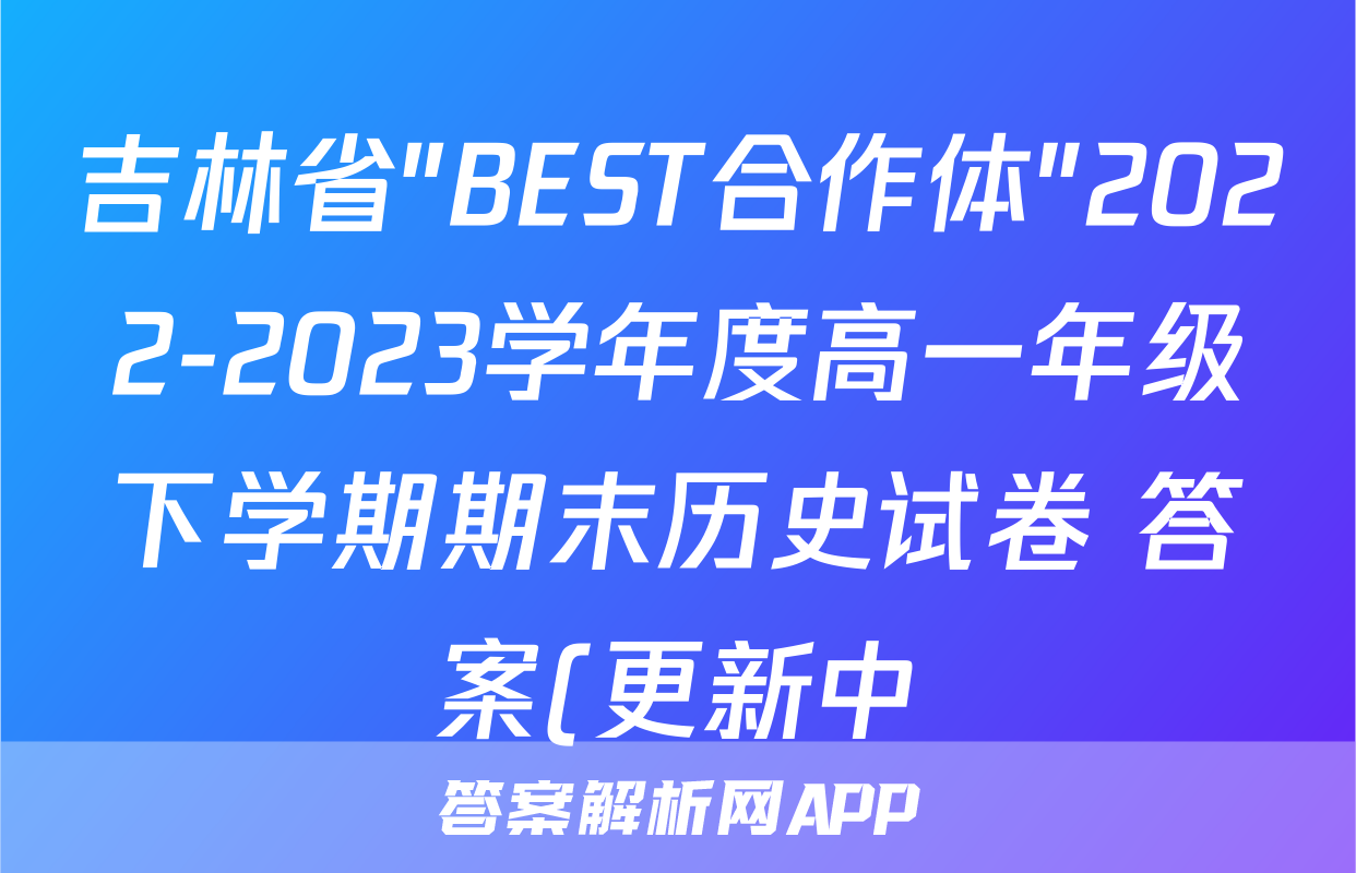 吉林省"BEST合作体"2022-2023学年度高一年级下学期期末历史试卷 答案(更新中),目前2024届百校联盟答案网已经汇总了吉林省"BEST合作体"2022-2023学年度高一年级下学期期末历史试卷 答案(更新中)的各科答案和试卷,获取更多{{papers_name}}答案解析,请在关注本站。