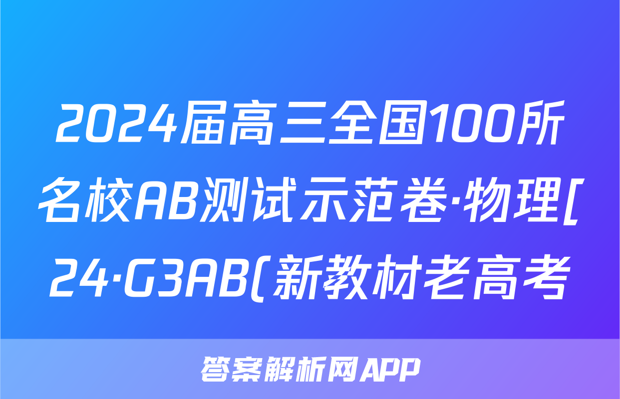 2024届高三全国100所名校AB测试示范卷·物理[24·G3AB(新教材老高考)·物理-JKB-必考-SC]一试题,目前2024届百校联盟答案网已经汇总了2024届高三全国100所名校AB测试示范卷·物理[24·G3AB(新教材老高考)·物理-JKB-必考-SC]一试题的各科答案和试卷,获取更多{{papers_name}}答案解析,请在关注本站。