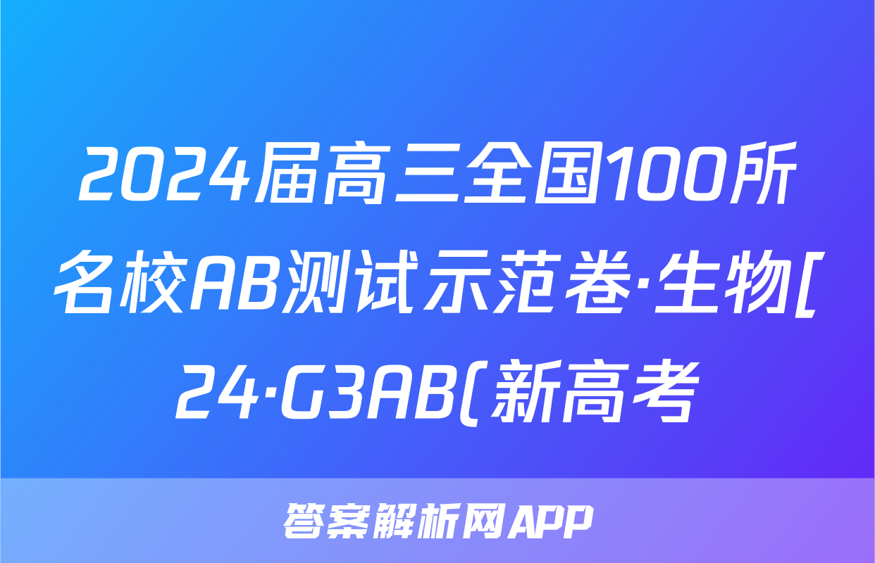 2024届高三全国100所名校AB测试示范卷·生物[24·G3AB(新高考)·生物-R-必考-HEB]八试题,目前2024届百校联盟答案网已经汇总了2024届高三全国100所名校AB测试示范卷·生物[24·G3AB(新高考)·生物-R-必考-HEB]八试题的各科答案和试卷,获取更多{{papers_name}}答案解析,请在关注本站。