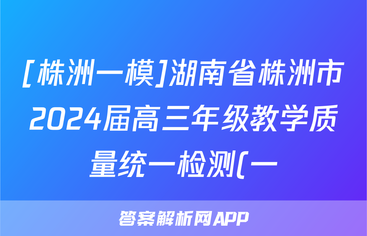 [株洲一模]湖南省株洲市2024届高三年级教学质量统一检测(一)生物答案,目前2024届百校联盟答案网已经汇总了[株洲一模]湖南省株洲市2024届高三年级教学质量统一检测(一)生物答案的各科答案和试卷,获取更多{{papers_name}}答案解析,请在关注本站。
