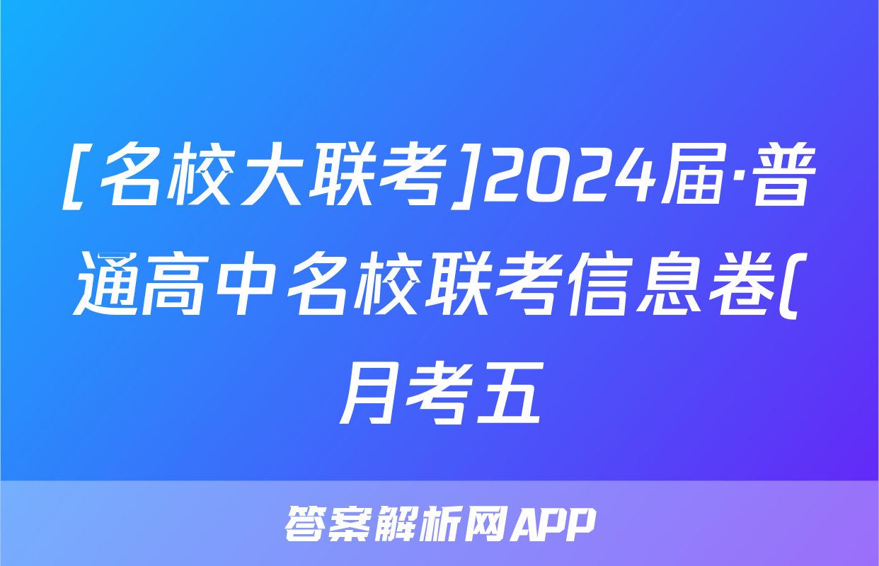 [名校大联考]2024届·普通高中名校联考信息卷(月考五)生物答案,目前2024届百校联盟答案网已经汇总了[名校大联考]2024届·普通高中名校联考信息卷(月考五)生物答案的各科答案和试卷,获取更多{{papers_name}}答案解析,请在关注本站。
