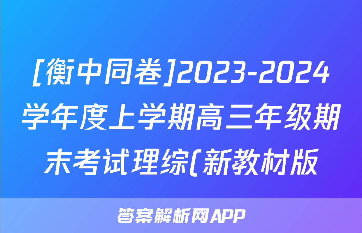 [衡中同卷]2023-2024学年度上学期高三年级期末考试理综(新教材版)答案,目前2024届百校联盟答案网已经汇总了[衡中同卷]2023-2024学年度上学期高三年级期末考试理综(新教材版)答案的各科答案和试卷,获取更多{{papers_name}}答案解析,请在关注本站。