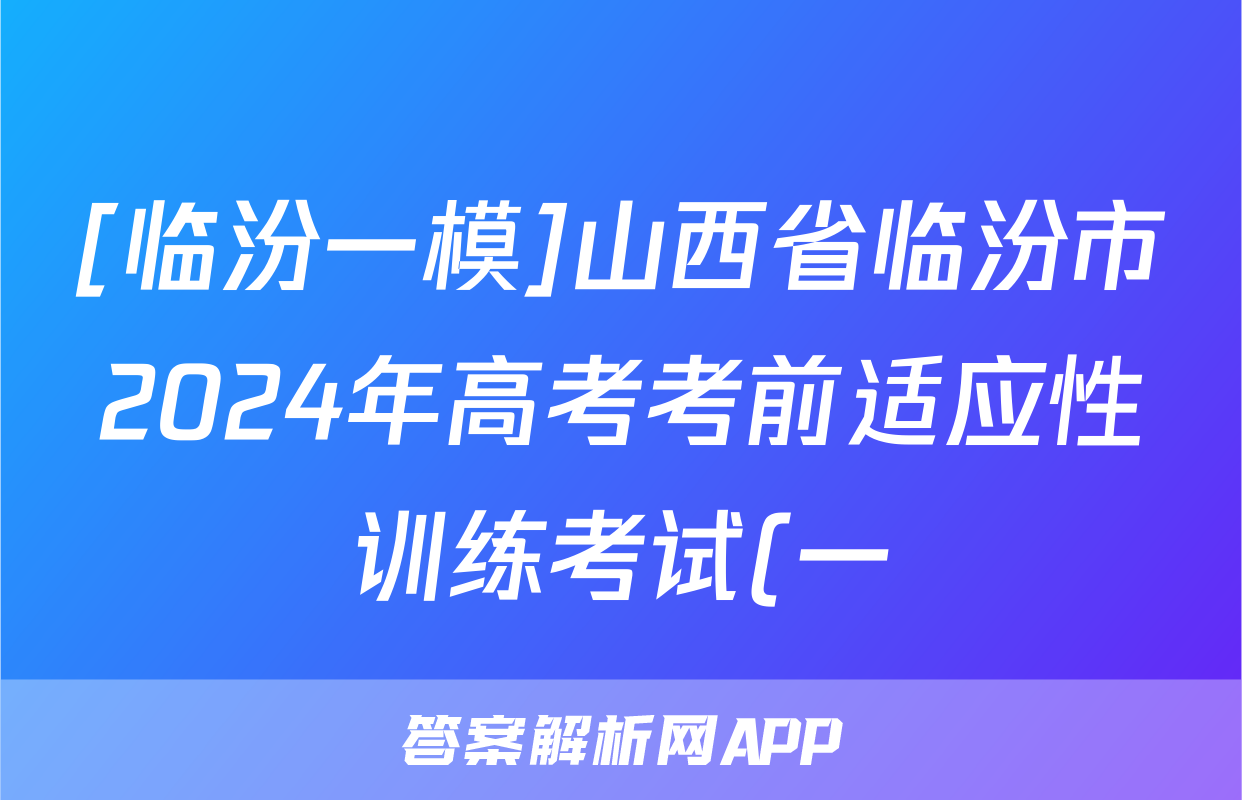 [临汾一模]山西省临汾市2024年高考考前适应性训练考试(一)1数学答案,目前2024届百校联盟答案网已经汇总了[临汾一模]山西省临汾市2024年高考考前适应性训练考试(一)1数学答案的各科答案和试卷,获取更多{{papers_name}}答案解析,请在关注本站。