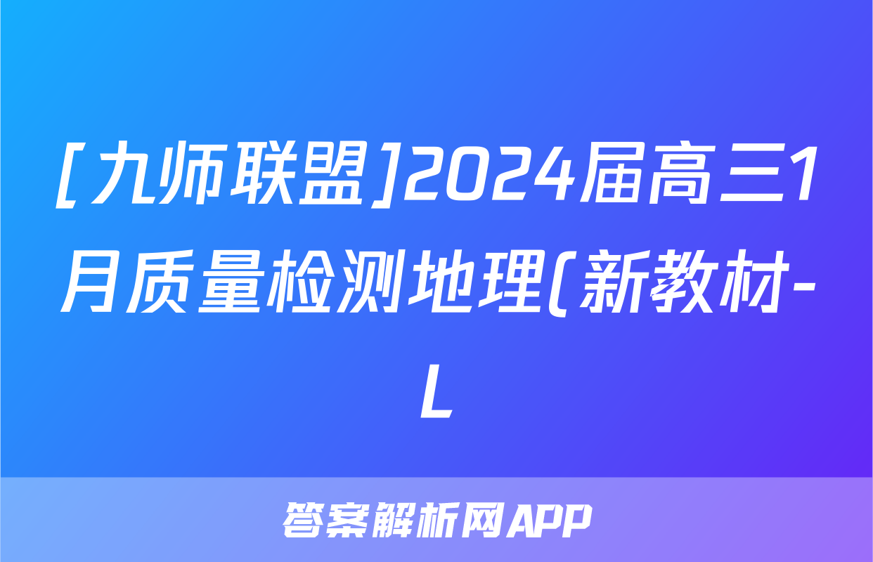 [九师联盟]2024届高三1月质量检测地理(新教材-L)答案,目前2024届百校联盟答案网已经汇总了[九师联盟]2024届高三1月质量检测地理(新教材-L)答案的各科答案和试卷,获取更多{{papers_name}}答案解析,请在关注本站。