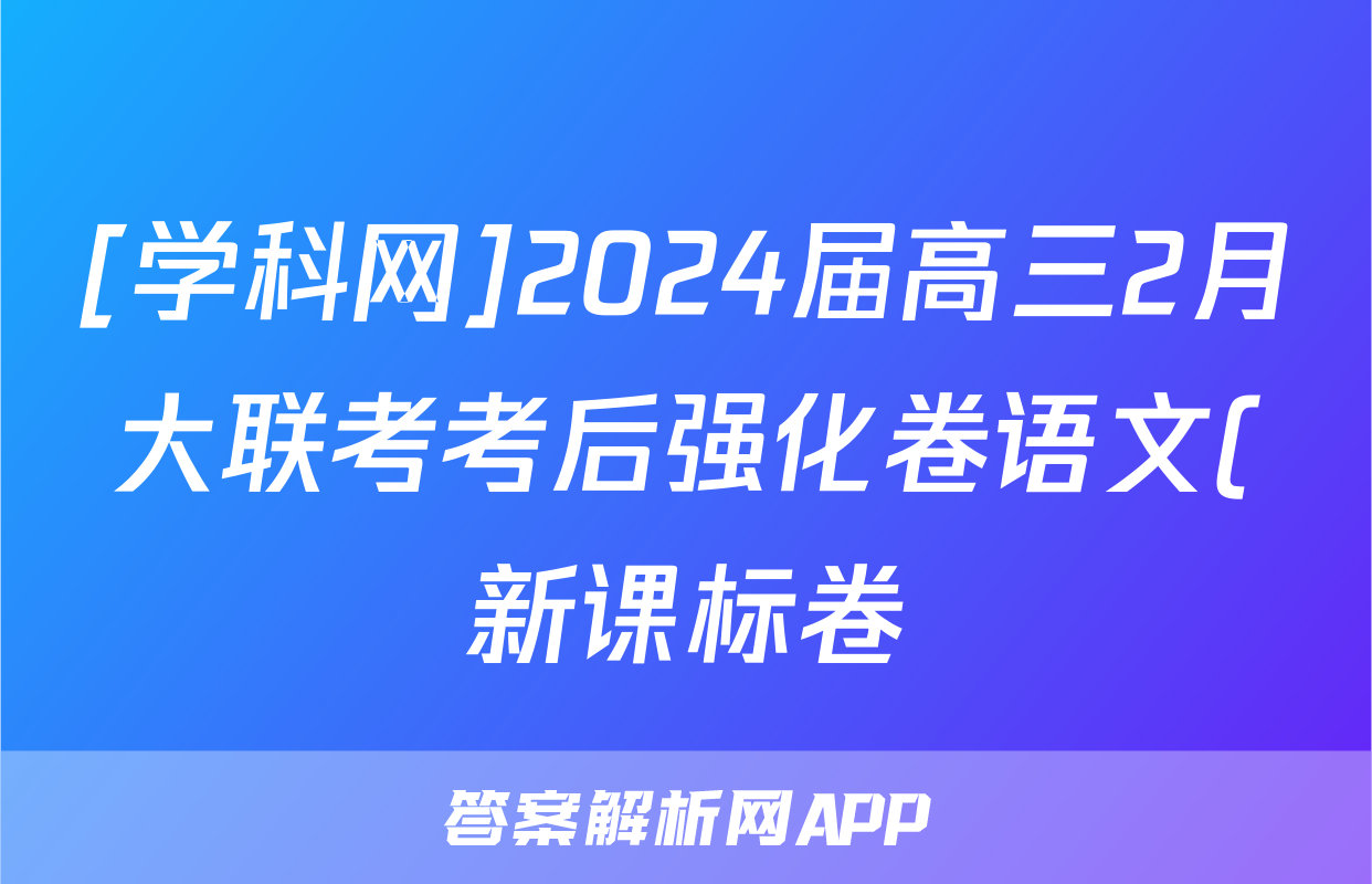 [学科网]2024届高三2月大联考考后强化卷语文(新课标卷)(新疆专用)试题,目前2024届百校联盟答案网已经汇总了[学科网]2024届高三2月大联考考后强化卷语文(新课标卷)(新疆专用)试题的各科答案和试卷,获取更多{{papers_name}}答案解析,请在关注本站。