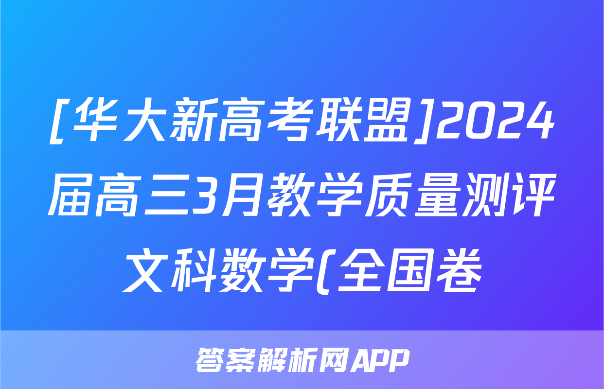 [华大新高考联盟]2024届高三3月教学质量测评文科数学(全国卷)试题,目前2024届百校联盟答案网已经汇总了[华大新高考联盟]2024届高三3月教学质量测评文科数学(全国卷)试题的各科答案和试卷,获取更多{{papers_name}}答案解析,请在关注本站。