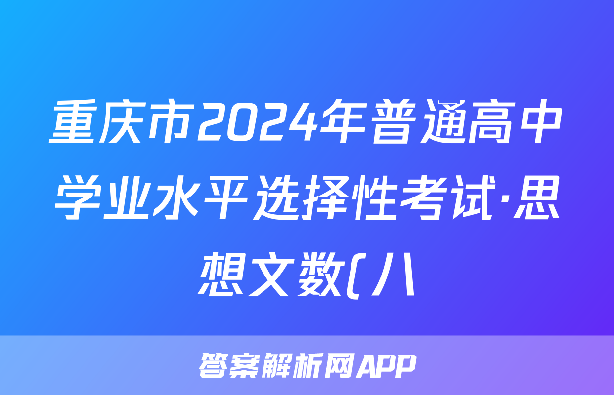 重庆市2024年普通高中学业水平选择性考试·思想文数(八)8[24·(新高考)ZX·MNJ·思想文数·CQ]试题,目前2024届百校联盟答案网已经汇总了重庆市2024年普通高中学业水平选择性考试·思想文数(八)8[24·(新高考)ZX·MNJ·思想文数·CQ]试题的各科答案和试卷,获取更多{{papers_name}}答案解析,请在关注本站。