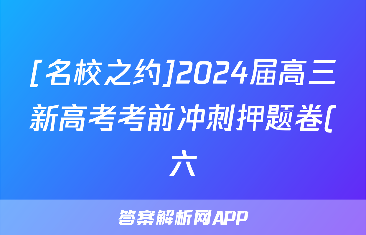 [名校之约]2024届高三新高考考前冲刺押题卷(六)6化学试题,目前2024届百校联盟答案网已经汇总了[名校之约]2024届高三新高考考前冲刺押题卷(六)6化学试题的各科答案和试卷,获取更多{{papers_name}}答案解析,请在关注本站。