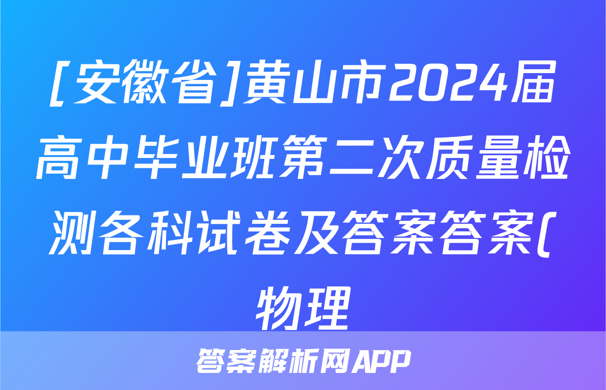 [安徽省]黄山市2024届高中毕业班第二次质量检测各科试卷及答案答案(物理),目前2024届百校联盟答案网已经汇总了[安徽省]黄山市2024届高中毕业班第二次质量检测各科试卷及答案答案(物理)的各科答案和试卷,获取更多{{papers_name}}答案解析,请在关注本站。