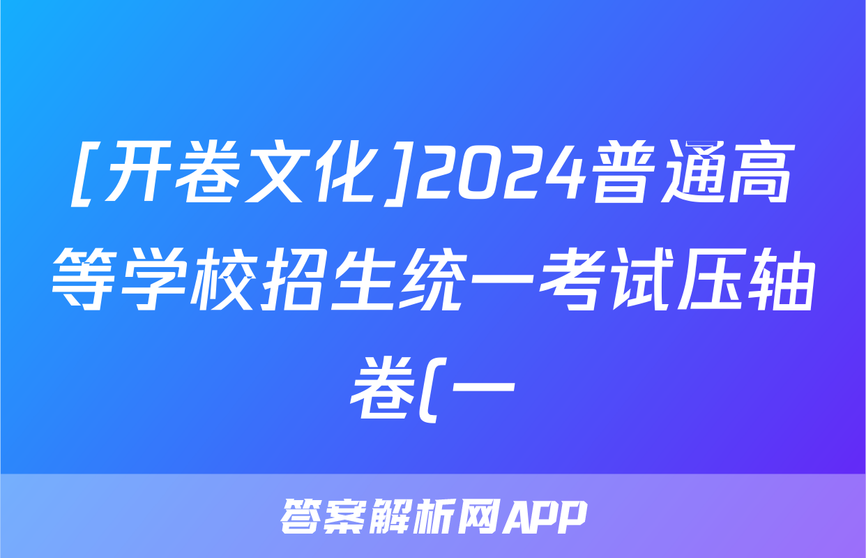 [开卷文化]2024普通高等学校招生统一考试压轴卷(一)1试题(数学),目前2024届百校联盟答案网已经汇总了[开卷文化]2024普通高等学校招生统一考试压轴卷(一)1试题(数学)的各科答案和试卷,获取更多{{papers_name}}答案解析,请在关注本站。