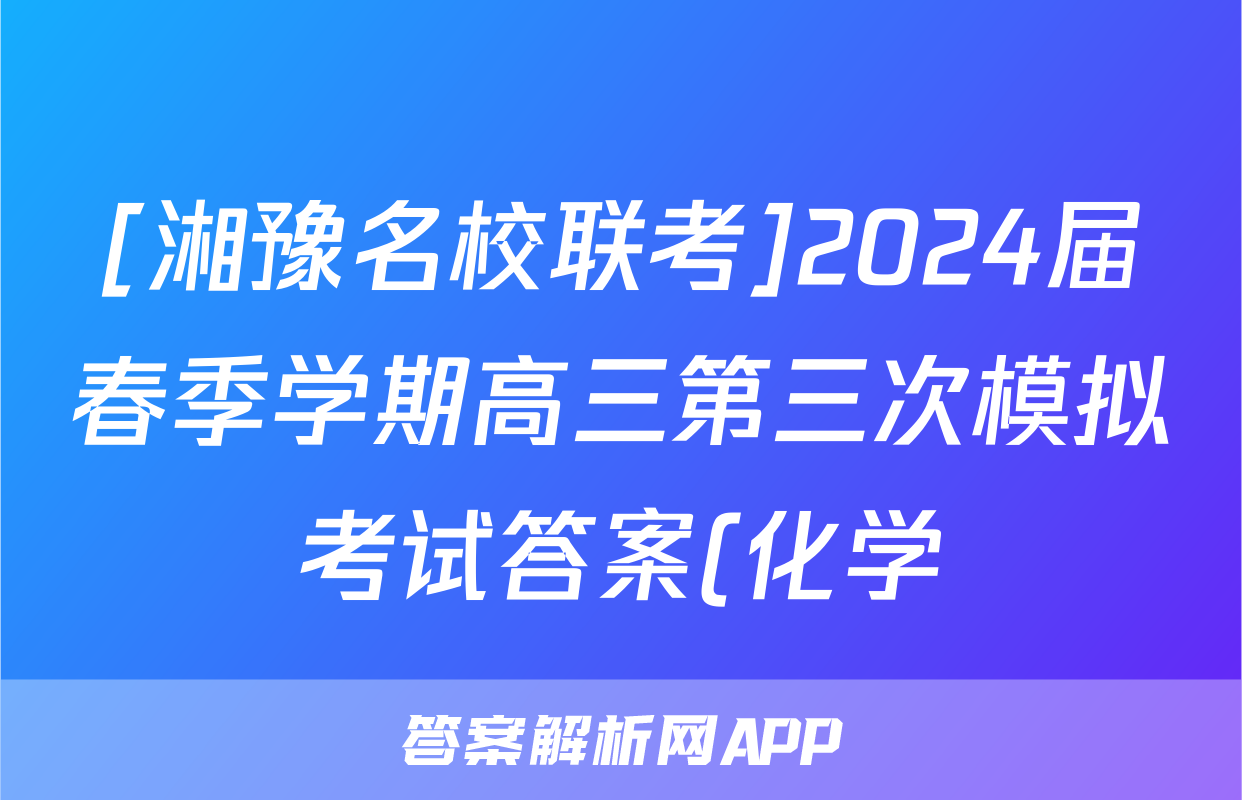 [湘豫名校联考]2024届春季学期高三第三次模拟考试答案(化学),目前2024届百校联盟答案网已经汇总了[湘豫名校联考]2024届春季学期高三第三次模拟考试答案(化学)的各科答案和试卷,获取更多{{papers_name}}答案解析,请在关注本站。