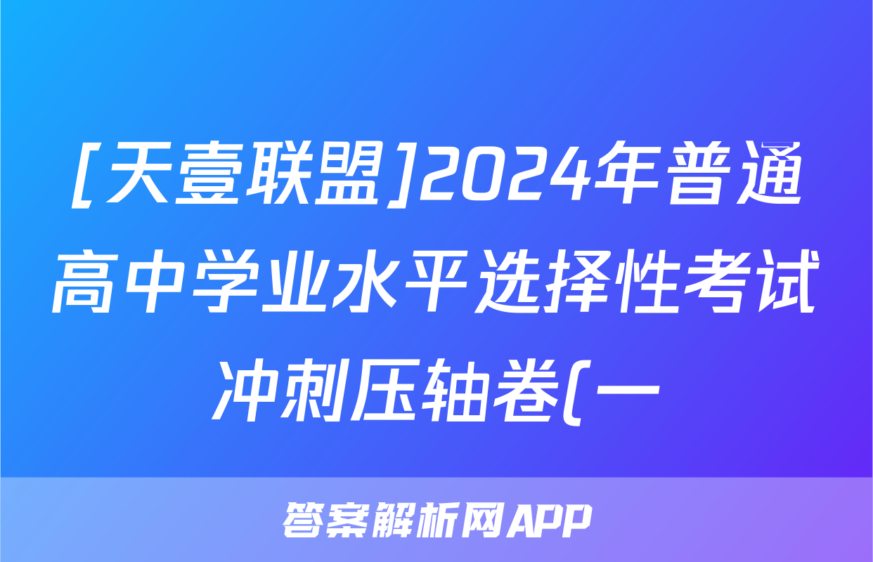 [天壹联盟]2024年普通高中学业水平选择性考试冲刺压轴卷(一)1答案(生物)
