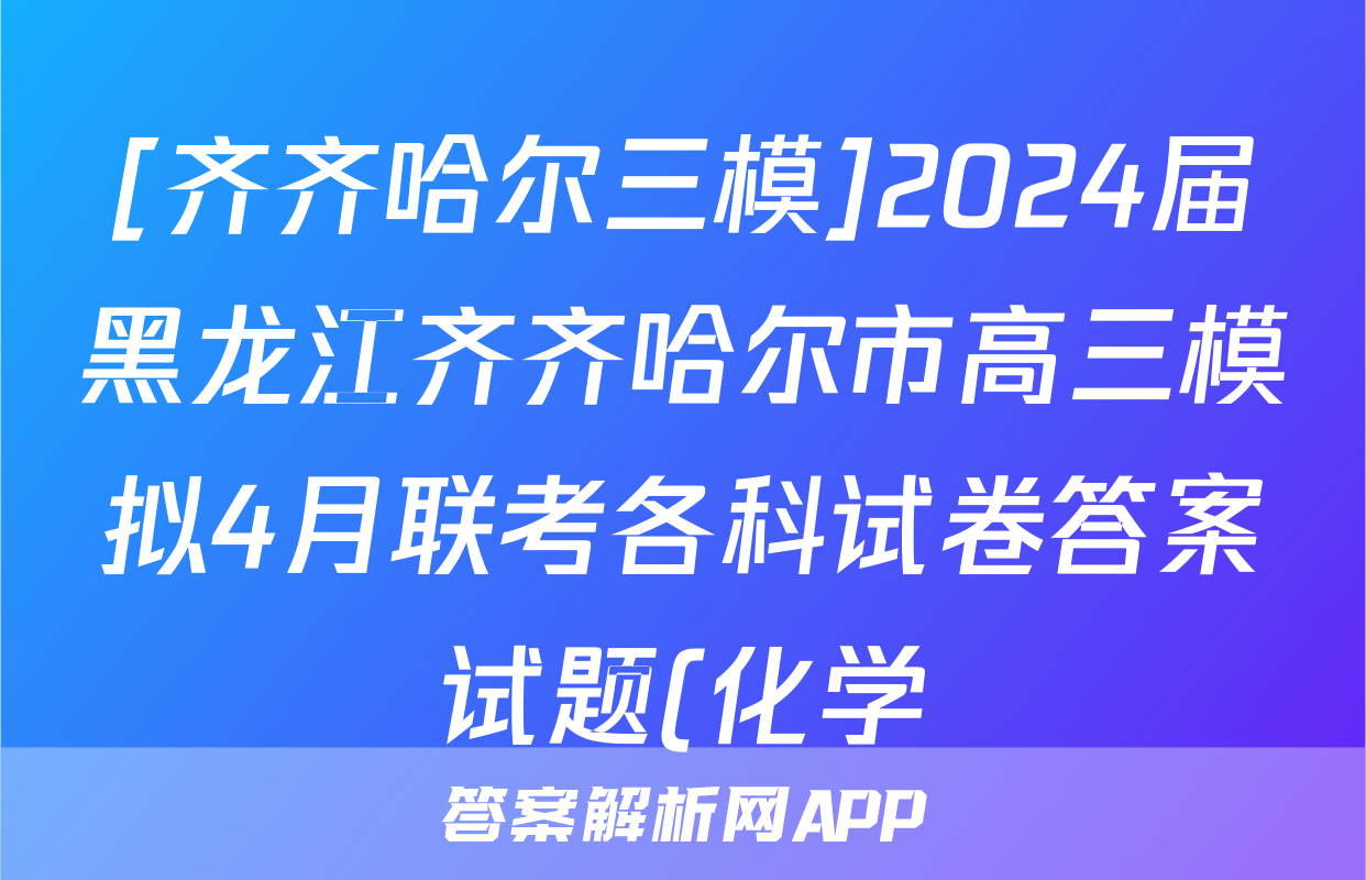 [齐齐哈尔三模]2024届黑龙江齐齐哈尔市高三模拟4月联考各科试卷答案试题(化学)