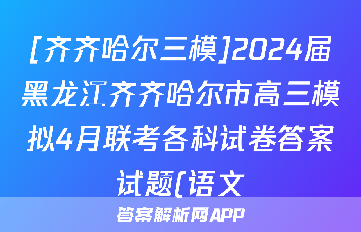 [齐齐哈尔三模]2024届黑龙江齐齐哈尔市高三模拟4月联考各科试卷答案试题(语文),目前2024届百校联盟答案网已经汇总了[齐齐哈尔三模]2024届黑龙江齐齐哈尔市高三模拟4月联考各科试卷答案试题(语文)的各科答案和试卷,获取更多{{papers_name}}答案解析,请在关注本站。