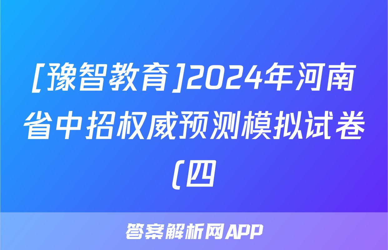 [豫智教育]2024年河南省中招权威预测模拟试卷(四)4英语答案,目前2024届百校联盟答案网已经汇总了[豫智教育]2024年河南省中招权威预测模拟试卷(四)4英语答案的各科答案和试卷,获取更多{{papers_name}}答案解析,请在关注本站。