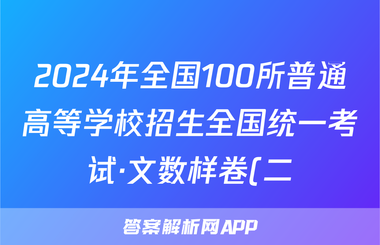 2024年全国100所普通高等学校招生全国统一考试·文数样卷(二)2[24·(新高考)高考样卷·文数·Y]答案,目前2024届百校联盟答案网已经汇总了2024年全国100所普通高等学校招生全国统一考试·文数样卷(二)2[24·(新高考)高考样卷·文数·Y]答案的各科答案和试卷,获取更多{{papers_name}}答案解析,请在关注本站。