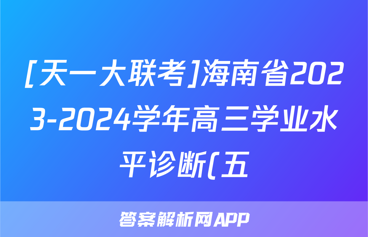 1、[天一大联考]海南省2023-2024学年高三学业水诊断(五)5试题(历史)