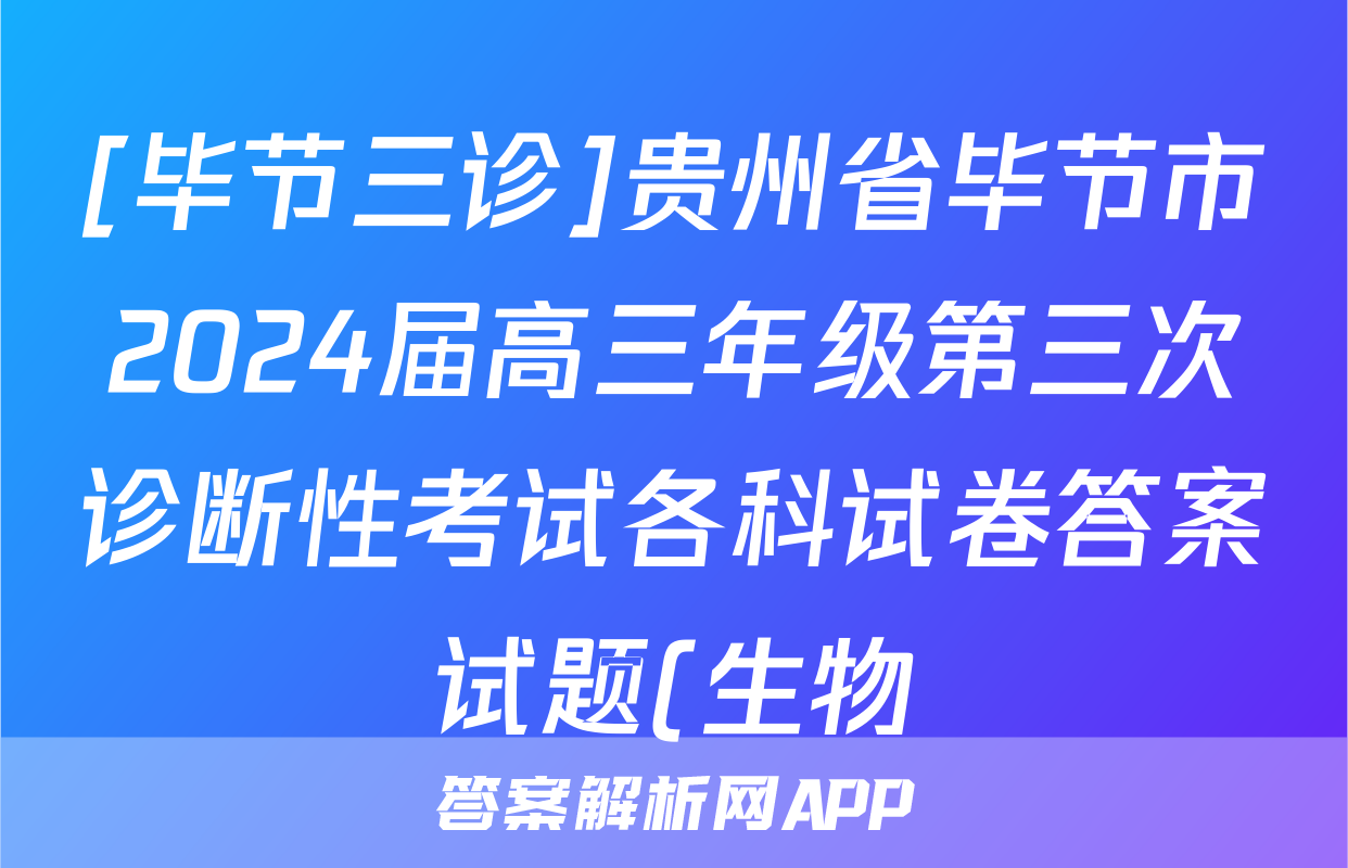 [毕节三诊]贵州省毕节市2024届高三年级第三次诊断性考试各科试卷答案试题(生物)