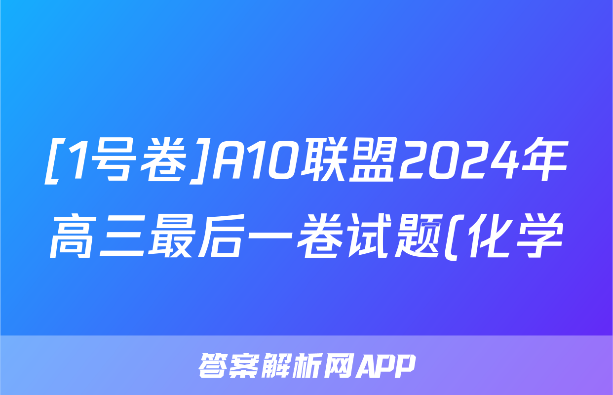[1号卷]A10联盟2024年高三最后一卷试题(化学),目前2024届百校联盟答案网已经汇总了[1号卷]A10联盟2024年高三最后一卷试题(化学)的各科答案和试卷,获取更多{{papers_name}}答案解析,请在关注本站。