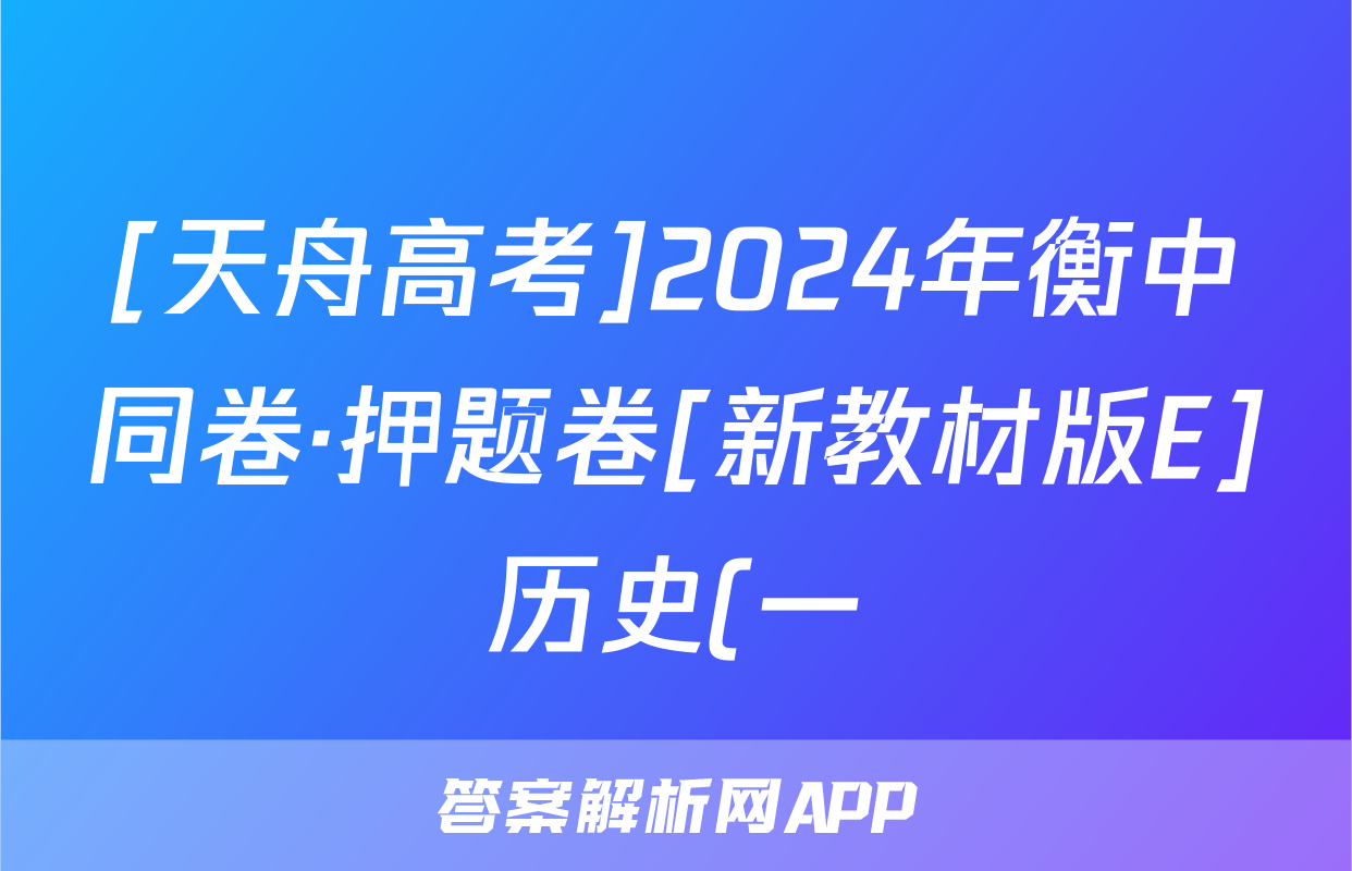 [天舟高考]2024年衡中同卷·押题卷[新教材版E]历史(一)1答案