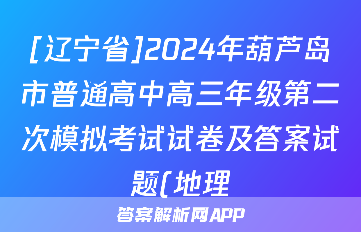 1、[辽宁省]2024年葫芦岛市普通高中高三年级第二次模拟考试试卷及答案答案(地理)