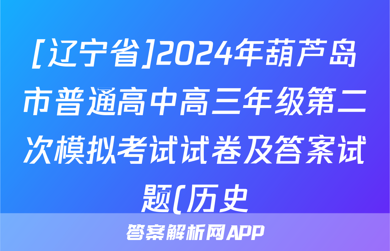2、[辽宁省]2024年葫芦岛市普通高中高三年级第二次模拟考试试卷及答案答案(历史)