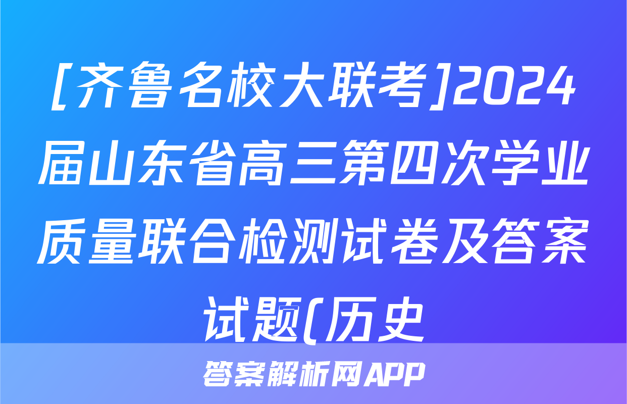 [齐鲁名校大联考]2024届山东省高三第四次学业质量联合检测试卷及答案试题(历史)