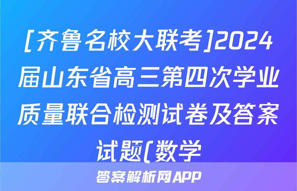 [齐鲁名校大联考]2024届山东省高三第四次学业质量联合检测试卷及答案试题(数学)