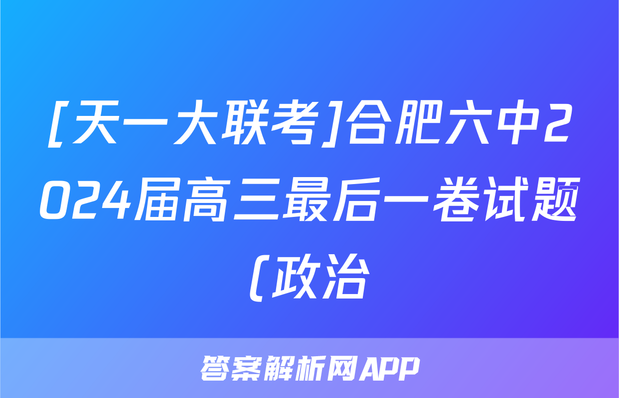 [天一大联考]合肥六中2024届高三最后一卷试题(政治),目前2024届百校联盟答案网已经汇总了[天一大联考]合肥六中2024届高三最后一卷试题(政治)的各科答案和试卷,获取更多{{papers_name}}答案解析,请在关注本站。