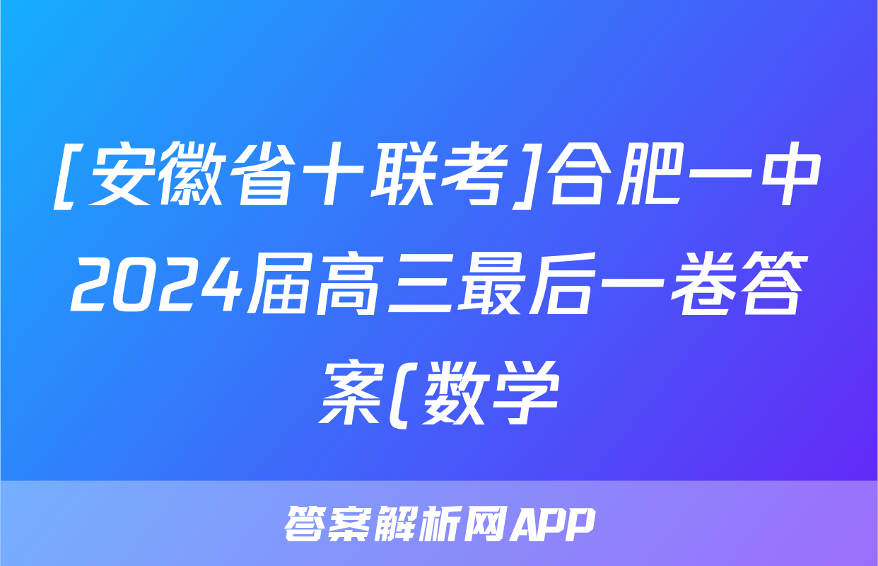 [安徽省十联考]合肥一中2024届高三最后一卷答案(数学),目前2024届百校联盟答案网已经汇总了[安徽省十联考]合肥一中2024届高三最后一卷答案(数学)的各科答案和试卷,获取更多{{papers_name}}答案解析,请在关注本站。