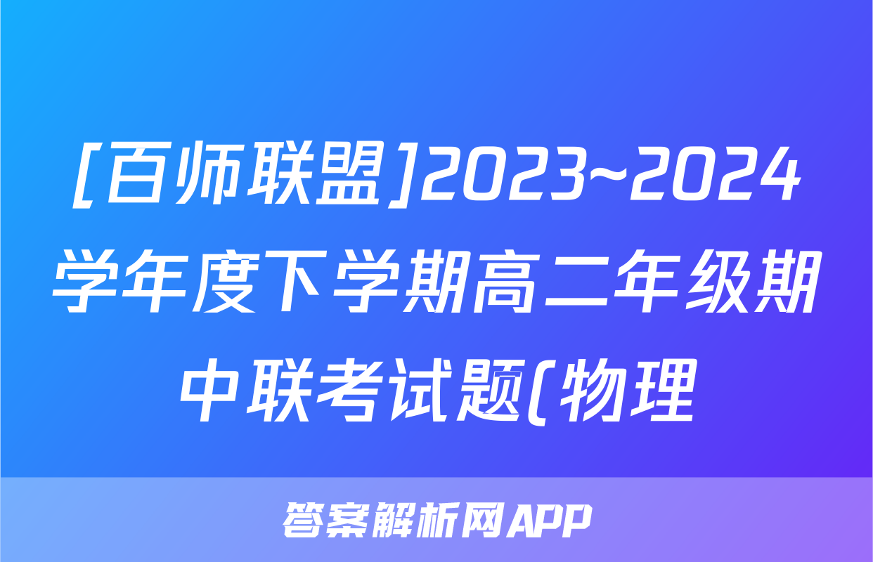 [百师联盟]2023~2024学年度下学期高二年级期中联考试题(物理),目前2024届百校联盟答案网已经汇总了[百师联盟]2023~2024学年度下学期高二年级期中联考试题(物理)的各科答案和试卷,获取更多{{papers_name}}答案解析,请在关注本站。
