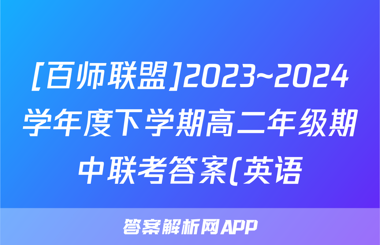 [百师联盟]2023~2024学年度下学期高二年级期中联考答案(英语),目前2024届百校联盟答案网已经汇总了[百师联盟]2023~2024学年度下学期高二年级期中联考答案(英语)的各科答案和试卷,获取更多{{papers_name}}答案解析,请在关注本站。