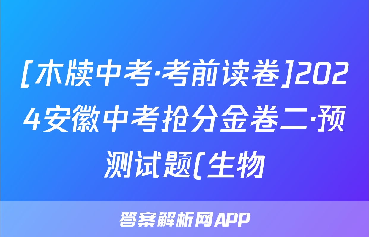 [木牍中考·考前读卷]2024安徽中考抢分金卷二·预测试题(生物),目前2024届百校联盟答案网已经汇总了[木牍中考·考前读卷]2024安徽中考抢分金卷二·预测试题(生物)的各科答案和试卷,获取更多{{papers_name}}答案解析,请在关注本站。