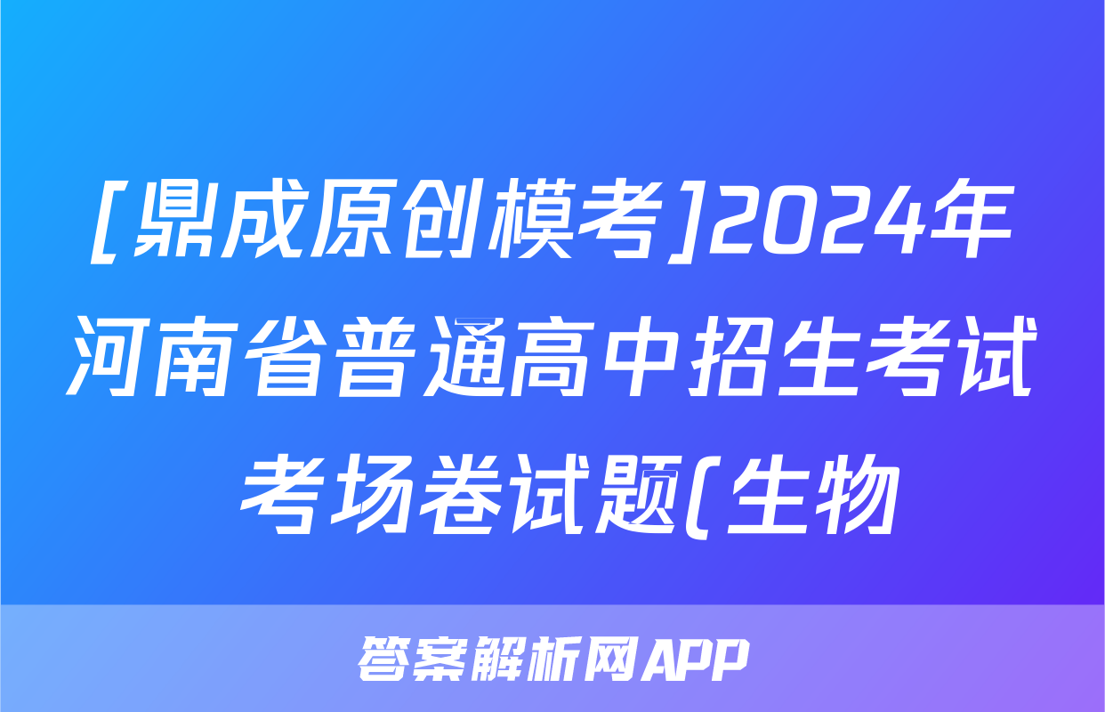 [鼎成原创模考]2024年河南省普通高中招生考试 考场卷试题(生物),目前2024届百校联盟答案网已经汇总了[鼎成原创模考]2024年河南省普通高中招生考试 考场卷试题(生物)的各科答案和试卷,获取更多{{papers_name}}答案解析,请在关注本站。