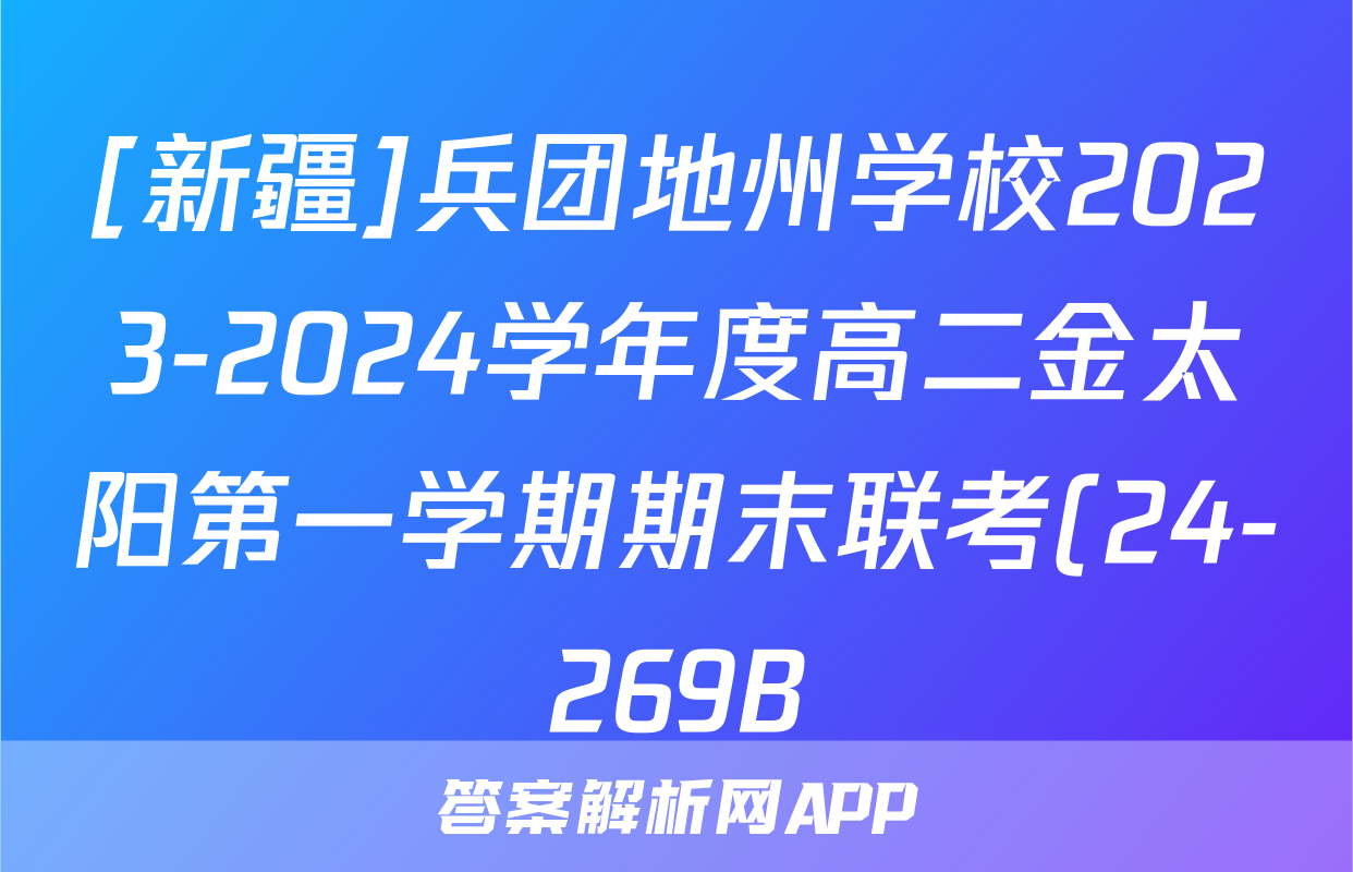 [新疆]兵团地州学校2023-2024学年度高二金太阳第一学期期末联考(24-269B)政治答案,目前2024届百校联盟答案网已经汇总了[新疆]兵团地州学校2023-2024学年度高二金太阳第一学期期末联考(24-269B)政治答案的各科答案和试卷,获取更多{{papers_name}}答案解析,请在关注本站。
