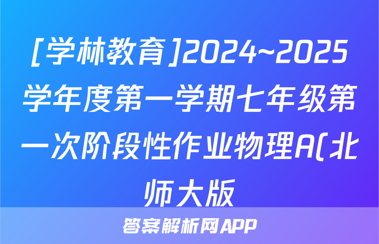 [学林教育]2024~2025学年度第一学期七年级第一次阶段性作业物理A(北师大版)试题