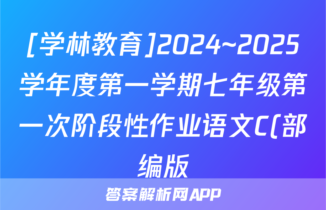 [学林教育]2024~2025学年度第一学期七年级第一次阶段性作业语文C(部编版)试题,目前2024届百校联盟答案网已经汇总了[学林教育]2024~2025学年度第一学期七年级第一次阶段性作业语文C(部编版)试题的各科答案和试卷,获取更多{{papers_name}}答案解析,请在关注本站。